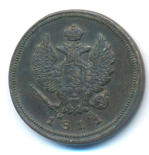 Манифестом от 29 августа 1810 года для медных монет всех номиналов стопа увеличивается в полтора раза и становится 24 рубля из пуда. В следующие два десятилетия по этой норме чеканятся только двухкопеечники, копейки и деньги, призванные ликвидировать нехватку разменной монеты. В оформлении монет вместо кольцевых ободков на оборотной стороне размещается венок из лавровой и дубовой ветвей, как на серебряной монете.
