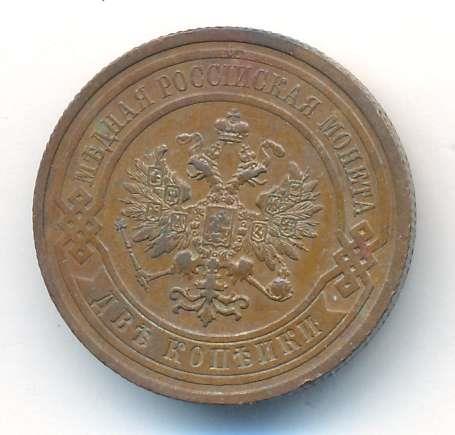 Лицевая сторона — двуглавый орел, надпись МЕДНАЯ РОССIЙСКАЯ МОНЕТА и обозначение номинала (две копейки); оборотная — обозначение номинала (2 копейки) в бусовом ободке и дата. Нормативный вес — 6,55 грамма, гурт рубчатый.