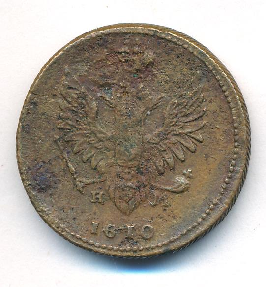 Манифестом от 29 августа 1810 года для медных монет всех номиналов стопа увеличивается в полтора раза и становится 24 рубля из пуда. В следующие два десятилетия по этой норме чеканятся только двухкопеечники, копейки и деньги, призванные ликвидировать нехватку разменной монеты. В оформлении монет вместо кольцевых ободков на оборотной стороне размещается венок из лавровой и дубовой ветвей, как на серебряной монете.