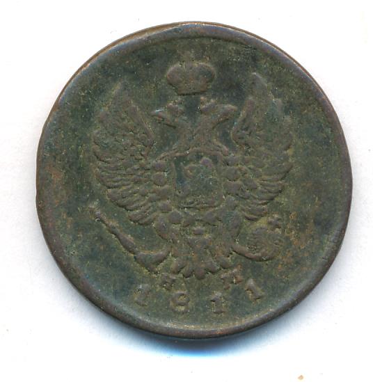 Манифестом от 29 августа 1810 года для медных монет всех номиналов стопа увеличивается в полтора раза и становится 24 рубля из пуда. В следующие два десятилетия по этой норме чеканятся только двухкопеечники, копейки и деньги, призванные ликвидировать нехватку разменной монеты. В оформлении монет вместо кольцевых ободков на оборотной стороне размещается венок из лавровой и дубовой ветвей, как на серебряной монете.