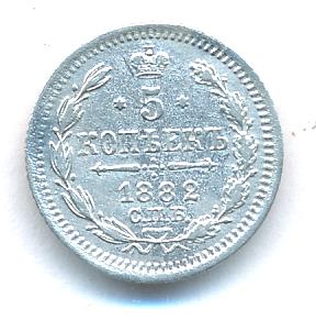 Лицевая сторона — гербовый орел, оборотная —обозначение номинала (5 копеекъ), окруженное венком из лавровой и дубовой ветвей и дата.