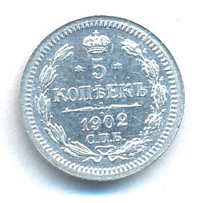 Лицевая сторона — гербовый орел, оборотная —обозначение номинала (5 копеекъ), окруженное венком из лавровой и дубовой ветвей и дата.