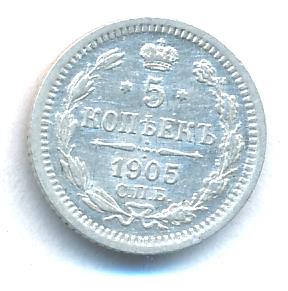 Лицевая сторона — гербовый орел, оборотная —обозначение номинала (5 копеекъ), окруженное венком из лавровой и дубовой ветвей и дата.