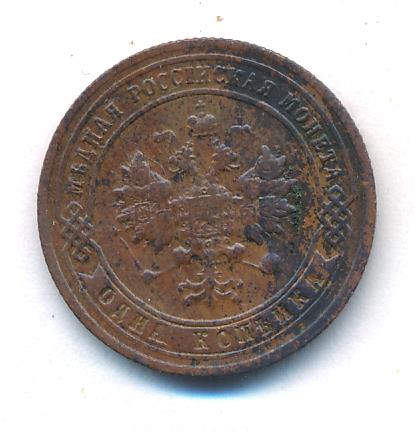 Лицевая сторона — двуглавый орел, надпись МЕДНАЯ РОССIЙСКАЯ МОНЕТА и обозначение номинала (одна копейка); оборотная — обозначение номинала (1 копейка) в бусовом ободке и дата. Нормативный вес — 3,28 грамма, гурт рубчатый.