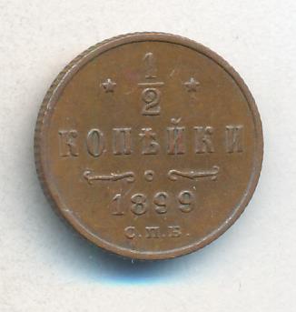 Лицевая сторона — вензель Александра II в венке из лавровой и дубовой ветвей; оборотная — обозначение номинала (1/2 копейки) и дата. Нормативный вес — 1,64 грамма, гурт рубчатый.