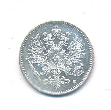 Лицевая сторона — российский двуглавый орел с гербом Великого княжества Финляндского на груди, оборотная — номинал и дата в венке из дубовых листьев. Проба — 750, нормативный вес — 1,27 грамма, гурт рубчатый.