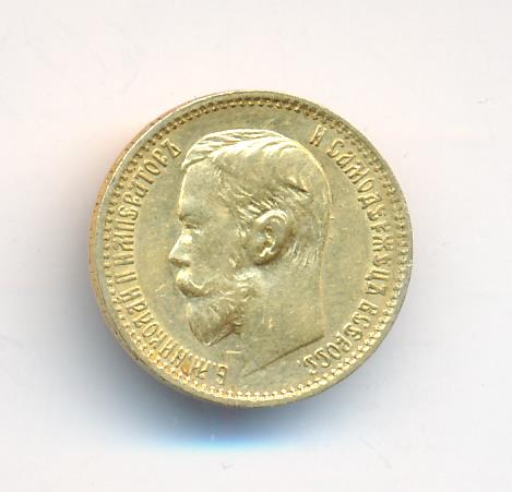 Лицевая сторона — портрет Николая II и надпись «Б.М. НИКОЛАЙ II ИМПЕРАТОРЪ И САМОДЕРЖЕЦЪ ВСЕРОСС»», оборотная — двуглавый орел, обозначение номинала (5 рублей) и дата.