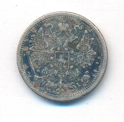 Лицевая сторона — гербовый орел, оборотная —обозначение номинала (15 копеекъ), окруженное венком из лавровой и дубовой ветвей и дата.