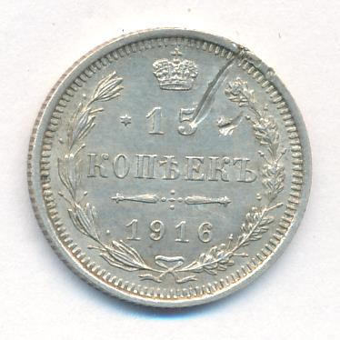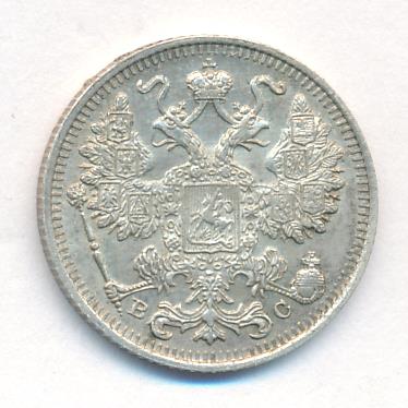 Лицевая сторона — гербовый орел, оборотная —обозначение номинала (15 копеекъ), окруженное венком из лавровой и дубовой ветвей и дата.