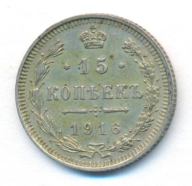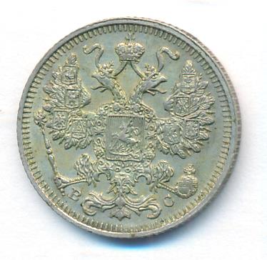 Лицевая сторона — гербовый орел, оборотная —обозначение номинала (15 копеекъ), окруженное венком из лавровой и дубовой ветвей и дата.