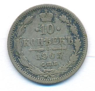 Лицевая сторона — гербовый орел, оборотная —обозначение номинала (10 копеекъ), окруженное венком из лавровой и дубовой ветвей и дата.