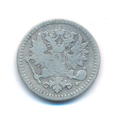 Лицевая сторона — российский двуглавый орел с гербом Великого княжества Финляндского на груди, оборотная — номинал и дата в венке из дубовых листьев. Проба — 750, нормативный вес — 2,55 грамма, гурт рубчатый.