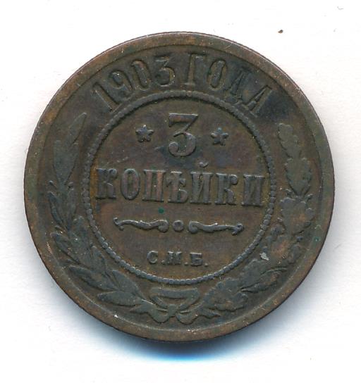 Лицевая сторона — двуглавый орел, надпись МЕДНАЯ РОССIЙСКАЯ МОНЕТА и обозначение номинала (три копейки); оборотная — обозначение номинала (3 копейки) в бусовом ободке и дата. Нормативный вес — 9,83 грамма, гурт рубчатый.