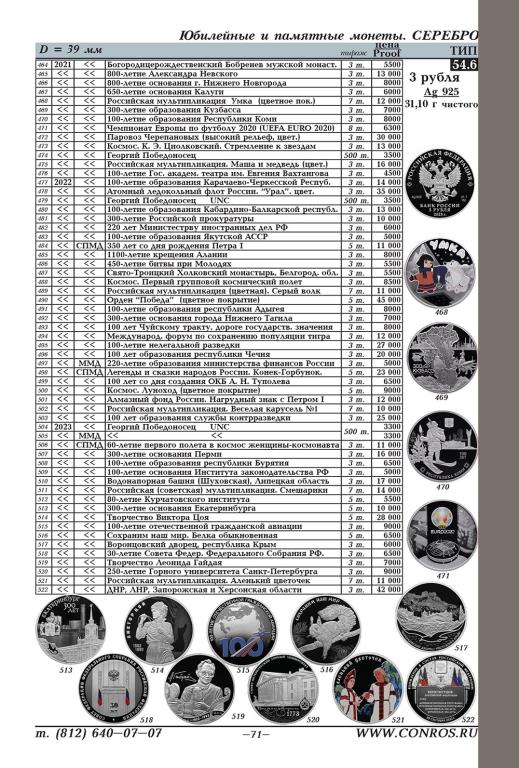 Особенности: Редакция дополнена большим количеством новинок от центрального банка России. Цены на монеты из драгоценных металлов не стоят на месте, сохраняется тенденция "Золото вверх!", разделы недрагоценных монет изменились не так сильно. Интересен своими изменениям