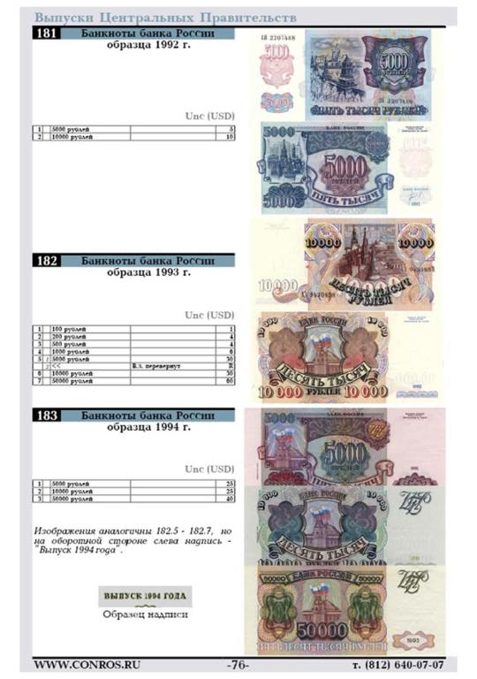 Особенности: Каталог включает в себя правительственные выпуски денежных знаков и приравненные к ним правительственными решениями заменители, обращавшиеся в сегодняшних границах Российской Федерации, выпуски территориальных отделений Госбанка, органов местного самоупра
