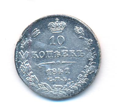 Лицевая сторона — новый гербовый орел с поднятыми крыльями, оборотная —обозначение номинала (10 копеекъ), окруженное венком из лавровой и дубовой ветвей и дата. Проба — 868, нормативный вес — 2,07 грамма.