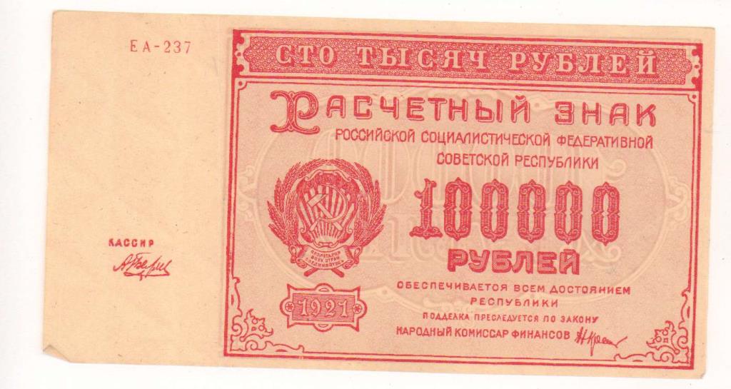 Расчетные знаки РСФСР образца 1921 г.