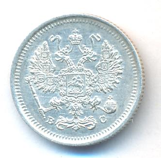 Лицевая сторона — гербовый орел, оборотная —обозначение номинала (10 копеекъ), окруженное венком из лавровой и дубовой ветвей и дата.
