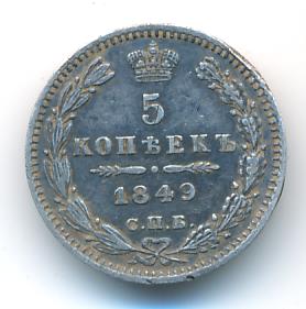 Лицевая сторона — новый гербовый орел с поднятыми крыльями, оборотная —обозначение номинала (5 копеекъ), окруженное венком из лавровой и дубовой ветвей и дата. Проба — 868, нормативный вес — 1,04 грамма.
