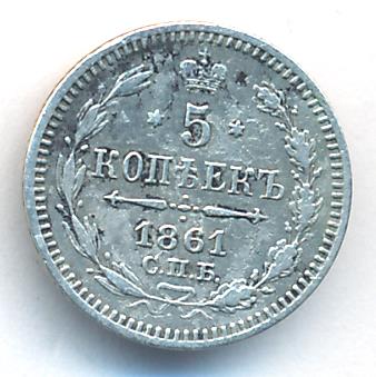 Лицевая сторона — гербовый орел, оборотная —обозначение номинала (5 копеекъ), окруженное венком из лавровой и дубовой ветвей и дата.