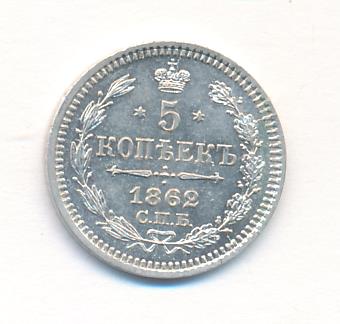 Лицевая сторона — гербовый орел, оборотная —обозначение номинала (5 копеекъ), окруженное венком из лавровой и дубовой ветвей и дата.