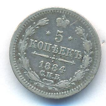Лицевая сторона — гербовый орел, оборотная —обозначение номинала (5 копеекъ), окруженное венком из лавровой и дубовой ветвей и дата.