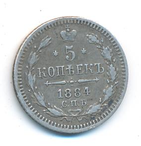 Лицевая сторона — гербовый орел, оборотная —обозначение номинала (5 копеекъ), окруженное венком из лавровой и дубовой ветвей и дата.