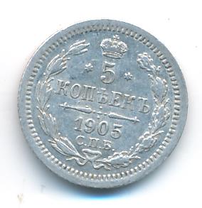 Лицевая сторона — гербовый орел, оборотная —обозначение номинала (5 копеекъ), окруженное венком из лавровой и дубовой ветвей и дата.