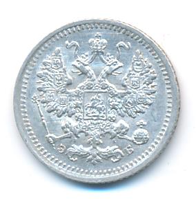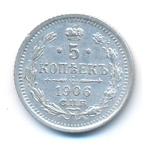 Лицевая сторона — гербовый орел, оборотная —обозначение номинала (5 копеекъ), окруженное венком из лавровой и дубовой ветвей и дата.