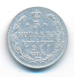 Лицевая сторона — гербовый орел, оборотная —обозначение номинала (5 копеекъ), окруженное венком из лавровой и дубовой ветвей и дата.