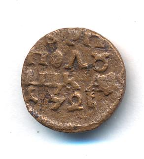Указом от 27 февраля 1718 года предписывается делать из меди только полушки по стопе 40 рублей из пуда «против поданных образцовых резного штемпельного дела мастера Федора Подуруя». Для затруднения подделки монеты предполагалось делать улучшенного оформления и с гуртиками. Однако эти меры реализованы не были, и вскоре фальшивки заполнили рынок ( при изъятии полушек в 1730-х годах дворы отчитывались о наличии среди них до 40% подделок).
