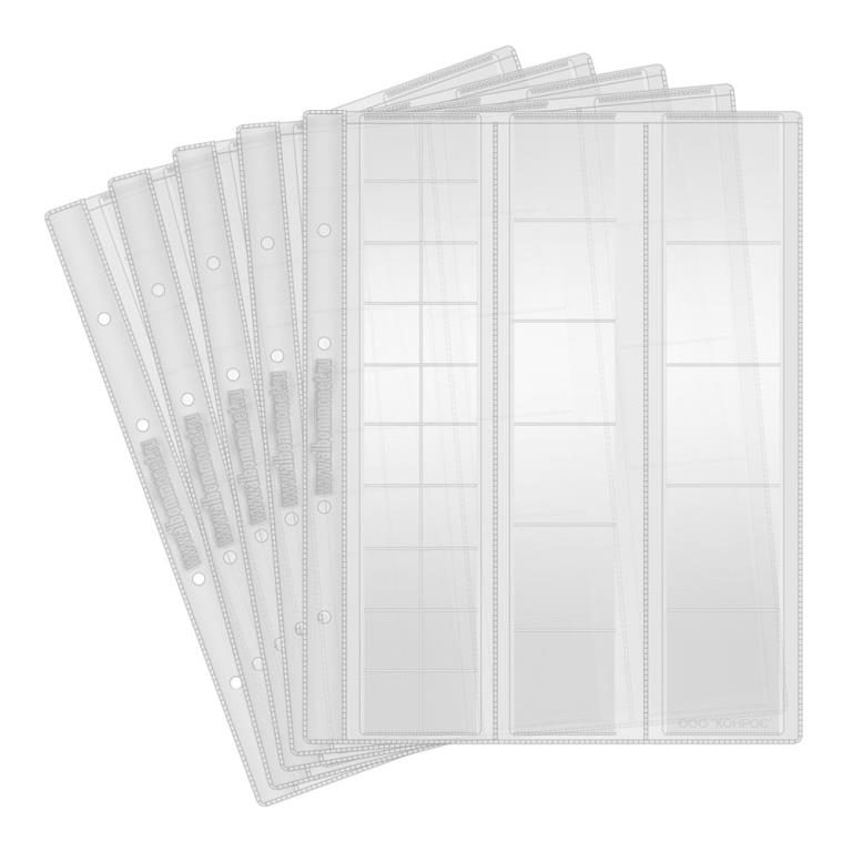 Особенности: Размер 200х250 мм, Лист предназначен для хранения 29 монет. Размеры ячеек: вставка на 5 ячеек 47 х 48 мм, вставка на 6 ячеек 38 х 39 мм, вставка на 18 ячеек 25 х 25 мм, материал: ПВХ. Коллекционный материал виден с обеих сторон. Лист системы OPTIMA для монет