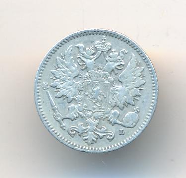 Лицевая сторона — российский двуглавый орел с гербом Великого княжества Финляндского на груди, оборотная — номинал и дата в венке из дубовых листьев. Проба — 750, нормативный вес — 1,27 грамма, гурт рубчатый.