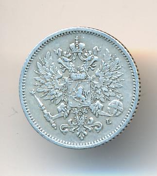 Лицевая сторона — российский двуглавый орел с гербом Великого княжества Финляндского на груди, оборотная — номинал и дата в венке из дубовых листьев. Проба — 750, нормативный вес — 1,27 грамма, гурт рубчатый.