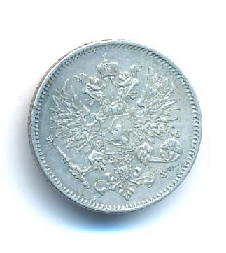 Лицевая сторона — российский двуглавый орел с гербом Великого княжества Финляндского на груди, оборотная — номинал и дата в венке из дубовых листьев. Проба — 750, нормативный вес — 1,27 грамма, гурт рубчатый.