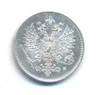 Лицевая сторона — российский двуглавый орел с гербом Великого княжества Финляндского на груди, оборотная — номинал и дата в венке из дубовых листьев. Проба — 750, нормативный вес — 1,27 грамма, гурт рубчатый.