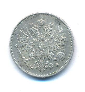 Лицевая сторона — российский двуглавый орел с гербом Великого княжества Финляндского на груди, оборотная — номинал и дата в венке из дубовых листьев. Проба — 750, нормативный вес — 1,27 грамма, гурт рубчатый.