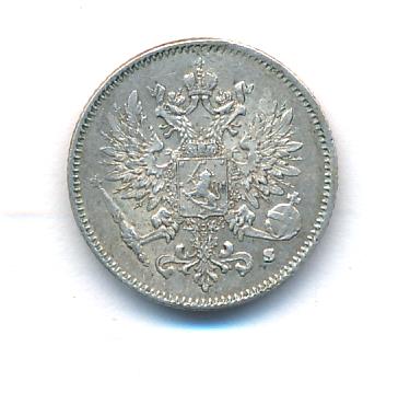 Лицевая сторона — российский двуглавый орел с гербом Великого княжества Финляндского на груди, оборотная — номинал и дата в венке из дубовых листьев. Проба — 750, нормативный вес — 1,27 грамма, гурт рубчатый.