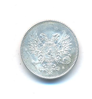 Лицевая сторона — российский двуглавый орел с гербом Великого княжества Финляндского на груди, оборотная — номинал и дата в венке из дубовых листьев. Проба — 750, нормативный вес — 1,27 грамма, гурт рубчатый.