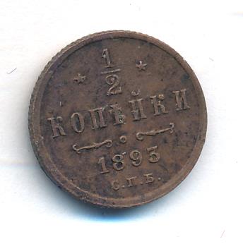 Лицевая сторона — вензель Александра II в венке из лавровой и дубовой ветвей; оборотная — обозначение номинала (1/2 копейки) и дата. Нормативный вес — 1,64 грамма, гурт рубчатый.