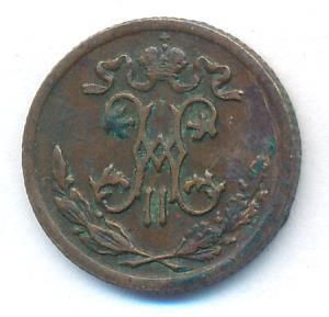Лицевая сторона — вензель Александра II в венке из лавровой и дубовой ветвей; оборотная — обозначение номинала (1/2 копейки) и дата. Нормативный вес — 1,64 грамма, гурт рубчатый.