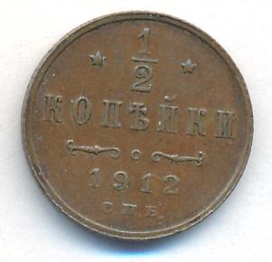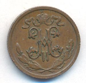 Лицевая сторона — вензель Александра II в венке из лавровой и дубовой ветвей; оборотная — обозначение номинала (1/2 копейки) и дата. Нормативный вес — 1,64 грамма, гурт рубчатый.