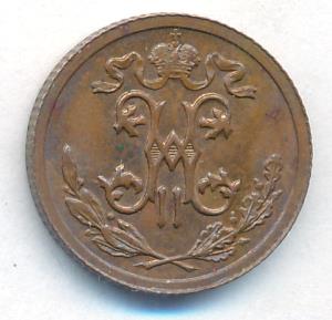 Лицевая сторона — вензель Александра II в венке из лавровой и дубовой ветвей; оборотная — обозначение номинала (1/2 копейки) и дата. Нормативный вес — 1,64 грамма, гурт рубчатый.