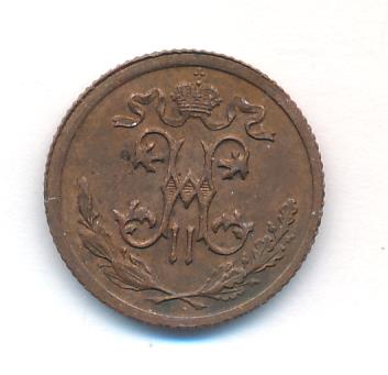 Лицевая сторона — вензель Александра II в венке из лавровой и дубовой ветвей; оборотная — обозначение номинала (1/2 копейки) и дата. Нормативный вес — 1,64 грамма, гурт рубчатый.