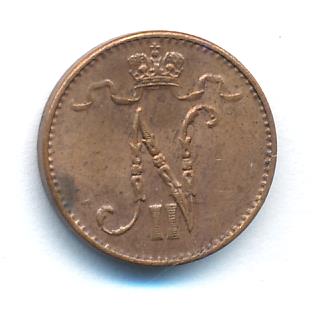 Лицевая сторона — вензель Александра II, оборотная — номинал (1 PENNIA) и дата. Нормативный вес — 1,28 грамма, гурт гладкий.