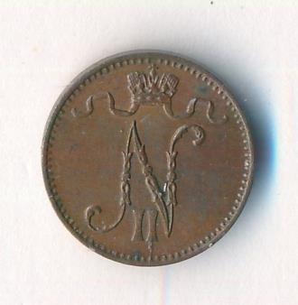 Лицевая сторона — вензель Александра II, оборотная — номинал (1 PENNIA) и дата. Нормативный вес — 1,28 грамма, гурт гладкий.