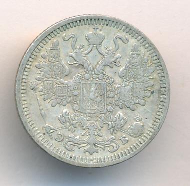 Лицевая сторона — гербовый орел, оборотная —обозначение номинала (15 копеекъ), окруженное венком из лавровой и дубовой ветвей и дата.