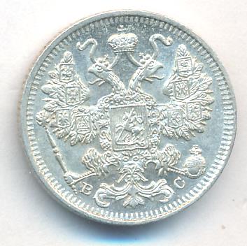 Лицевая сторона — гербовый орел, оборотная —обозначение номинала (15 копеекъ), окруженное венком из лавровой и дубовой ветвей и дата.