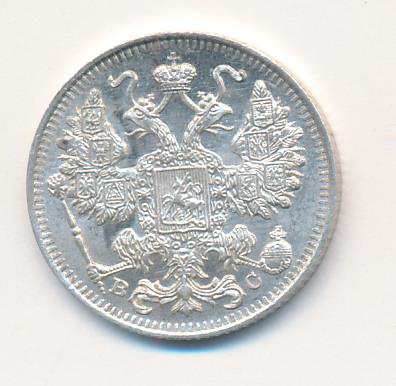 Лицевая сторона — гербовый орел, оборотная —обозначение номинала (15 копеекъ), окруженное венком из лавровой и дубовой ветвей и дата.