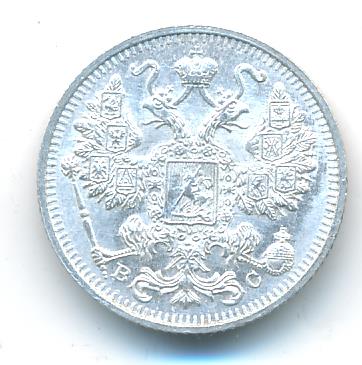 Лицевая сторона — гербовый орел, оборотная —обозначение номинала (15 копеекъ), окруженное венком из лавровой и дубовой ветвей и дата.